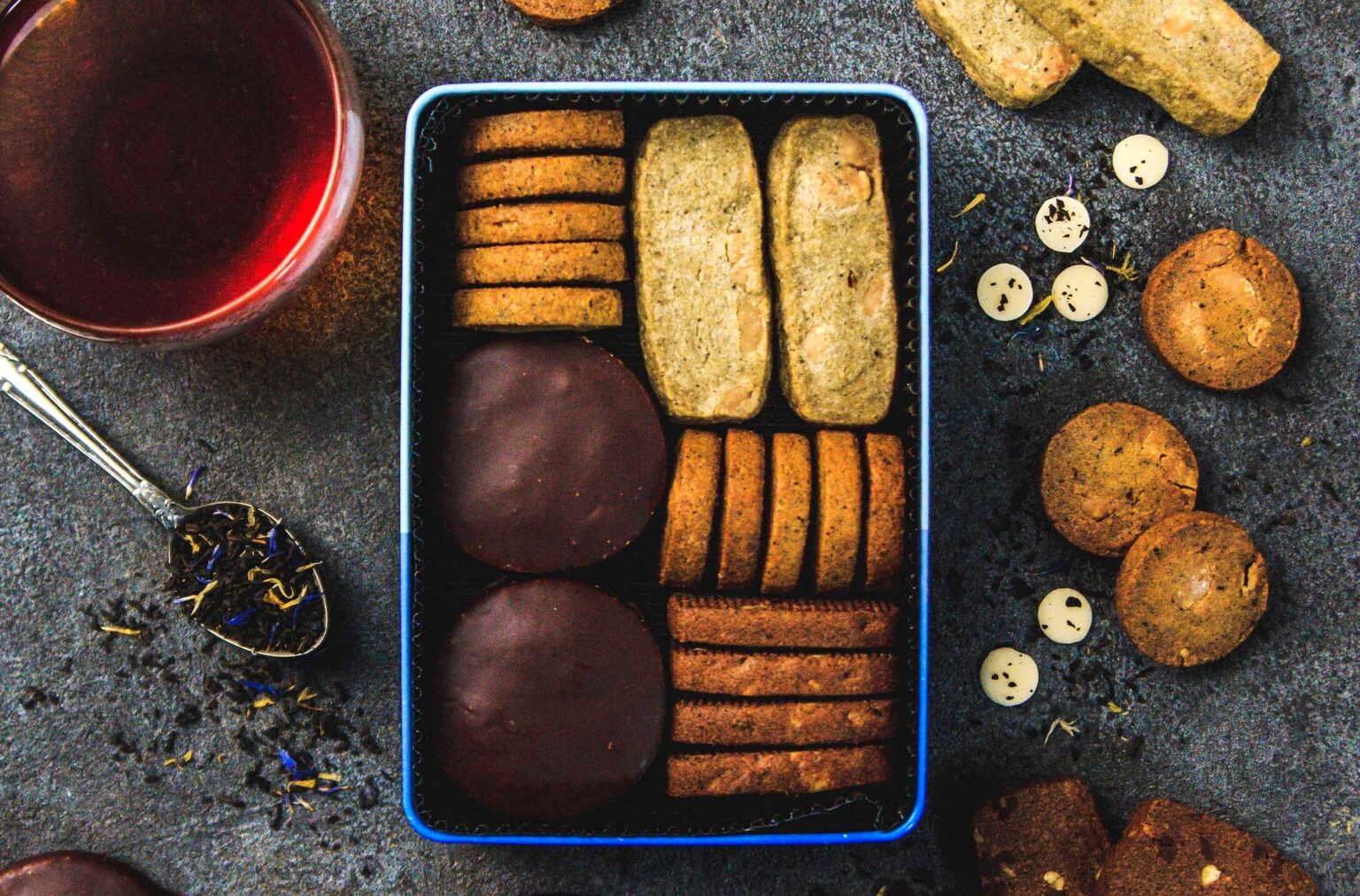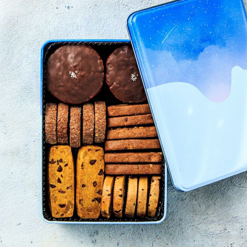 5種のクッキーをオリジナルデザイン缶に入れてお届け
