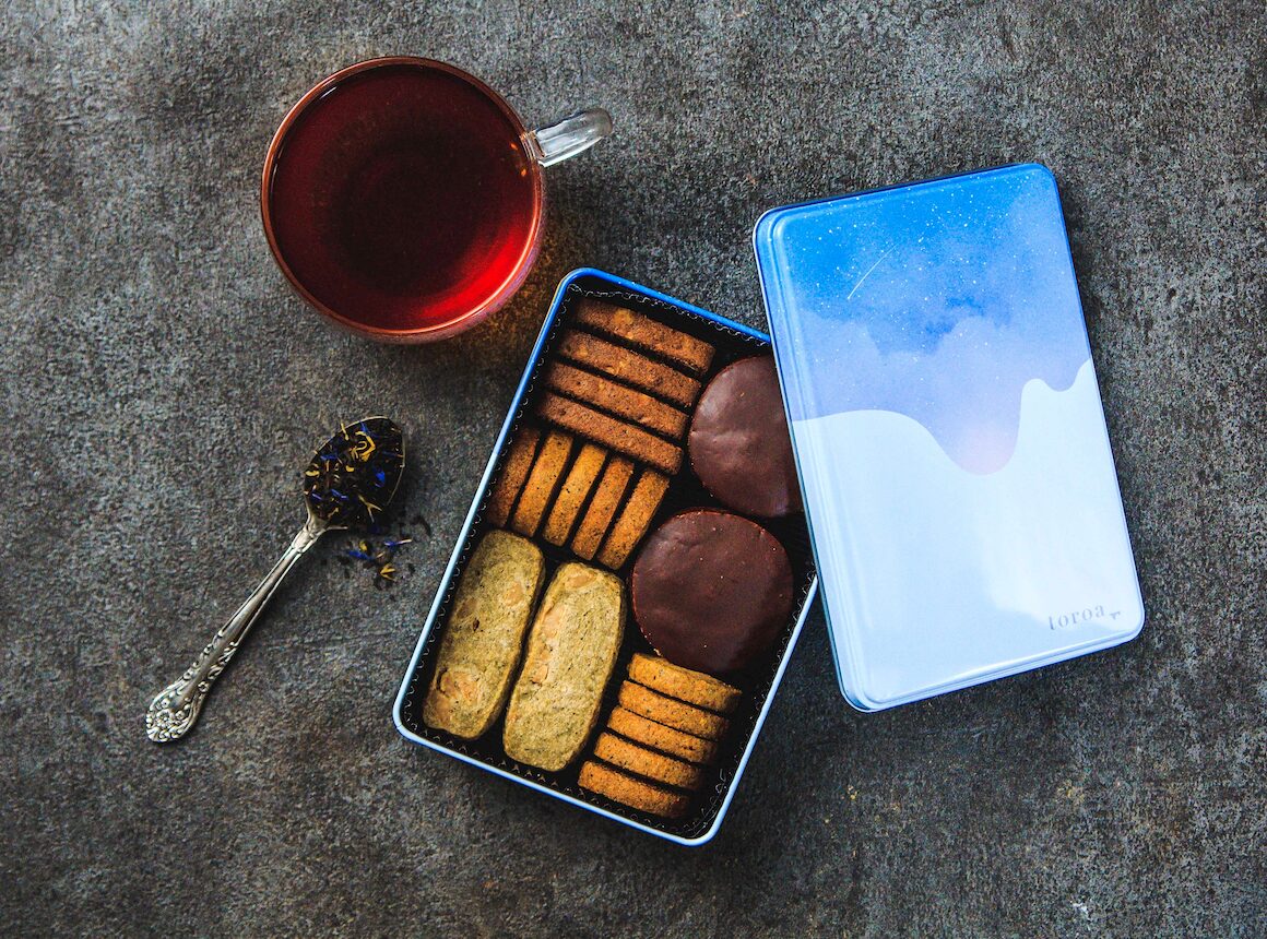 アールグレイ香るチョコだらけクッキー缶とtoroaTeaジンライムのティータイムセット