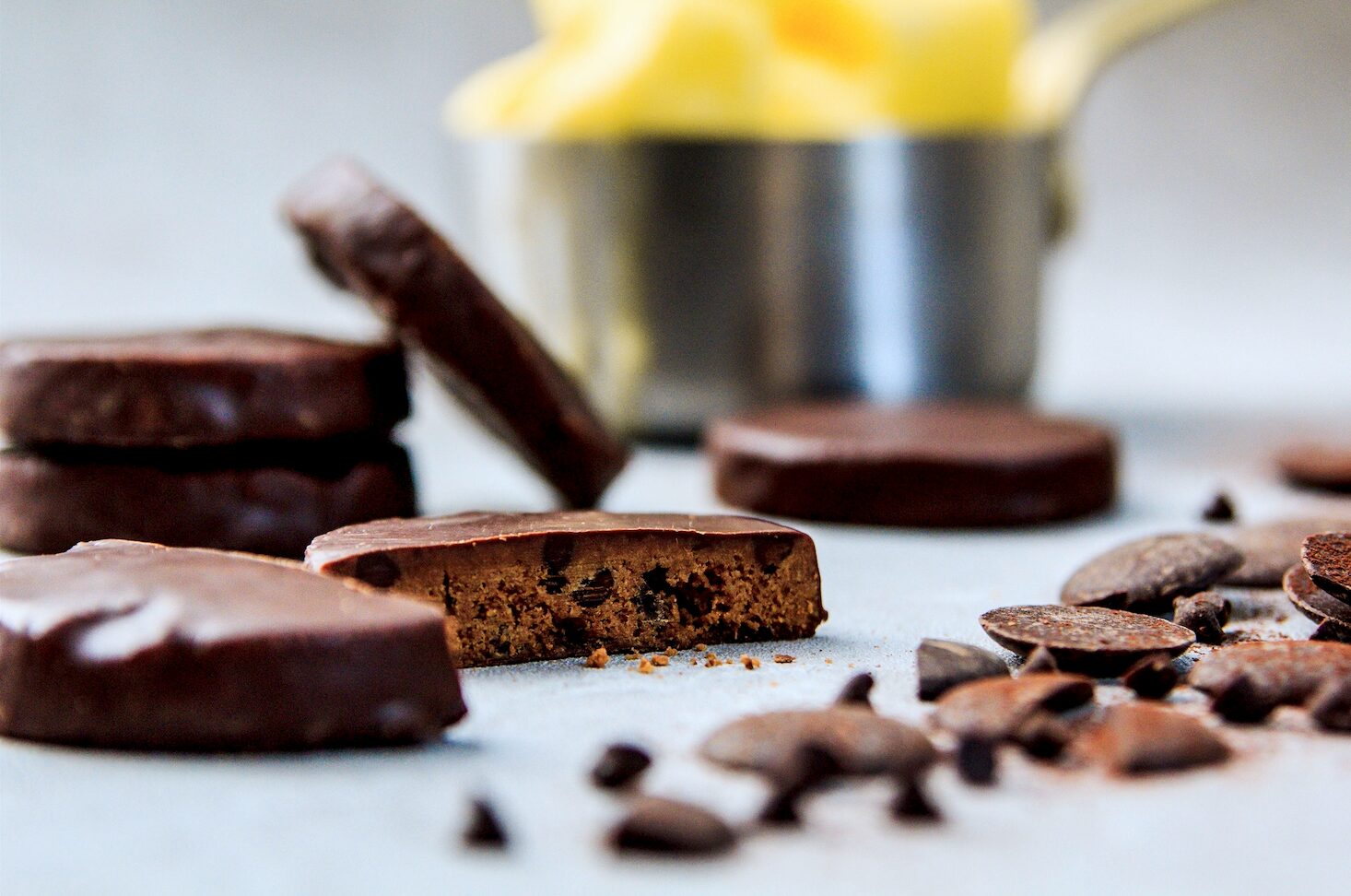 有機チョコチップと有機ココアパウダー配合、北海道発酵バターのコクと香りが広がるサクほろ生地に独自にブレンドしたチョコレートをコーティング。一口味わうごとにチョコレートを感じられます。