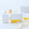 黄色と白のtoroaオリジナルの箱にお入れしてお届けします。+100円のオプションで贈り物にぴったりなリボンをおつけいたします。