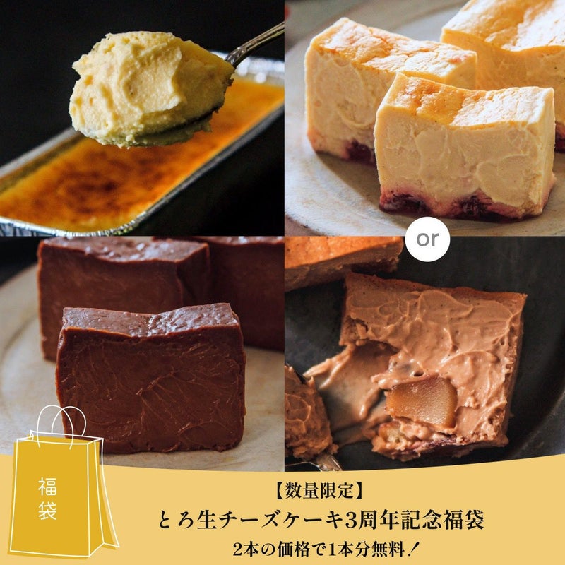 【数量限定】2本の価格で1本分無料!超お得なとろ生チーズケーキ3周年記念福袋
