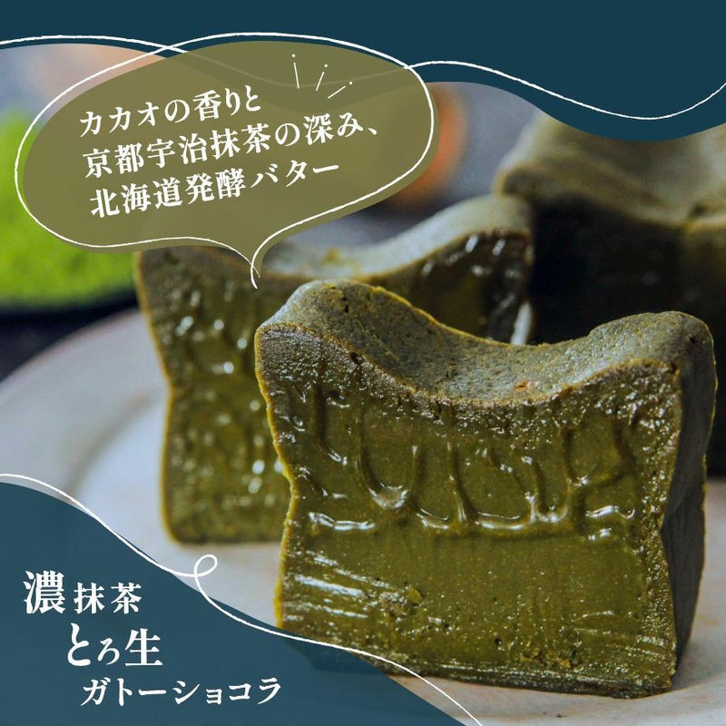 ミシュラン三つ星店が認めた料理人と共同開発。300本を超える試作を重ねひたすらに極上の味を追求した、全細胞がとろけるような口溶けのtoroaの定番人気商品「とろ生ガトーショコラ」を抹茶で和の味わいにしたのが「濃抹茶とろ生ガトーショコラ」です。
