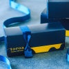 黄色とミッドナイトブルーのtoroaオリジナルデザインの箱にお入れしてお届けします。