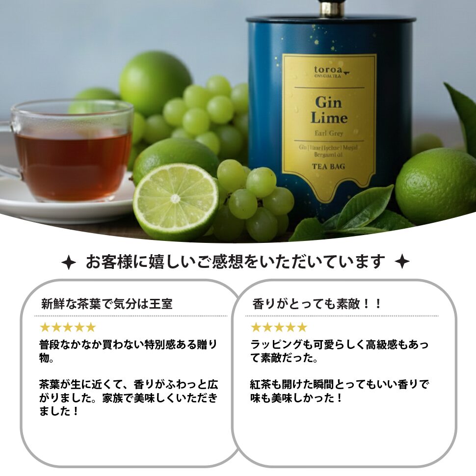 toroaTeaジンライムは、ベストお取り寄せ大賞2022で7,000品の頂点に輝いた『とろ生チーズケーキ』のtoroaが、茶葉の配合から余韻までこだわり抜いた究極の紅茶です。
